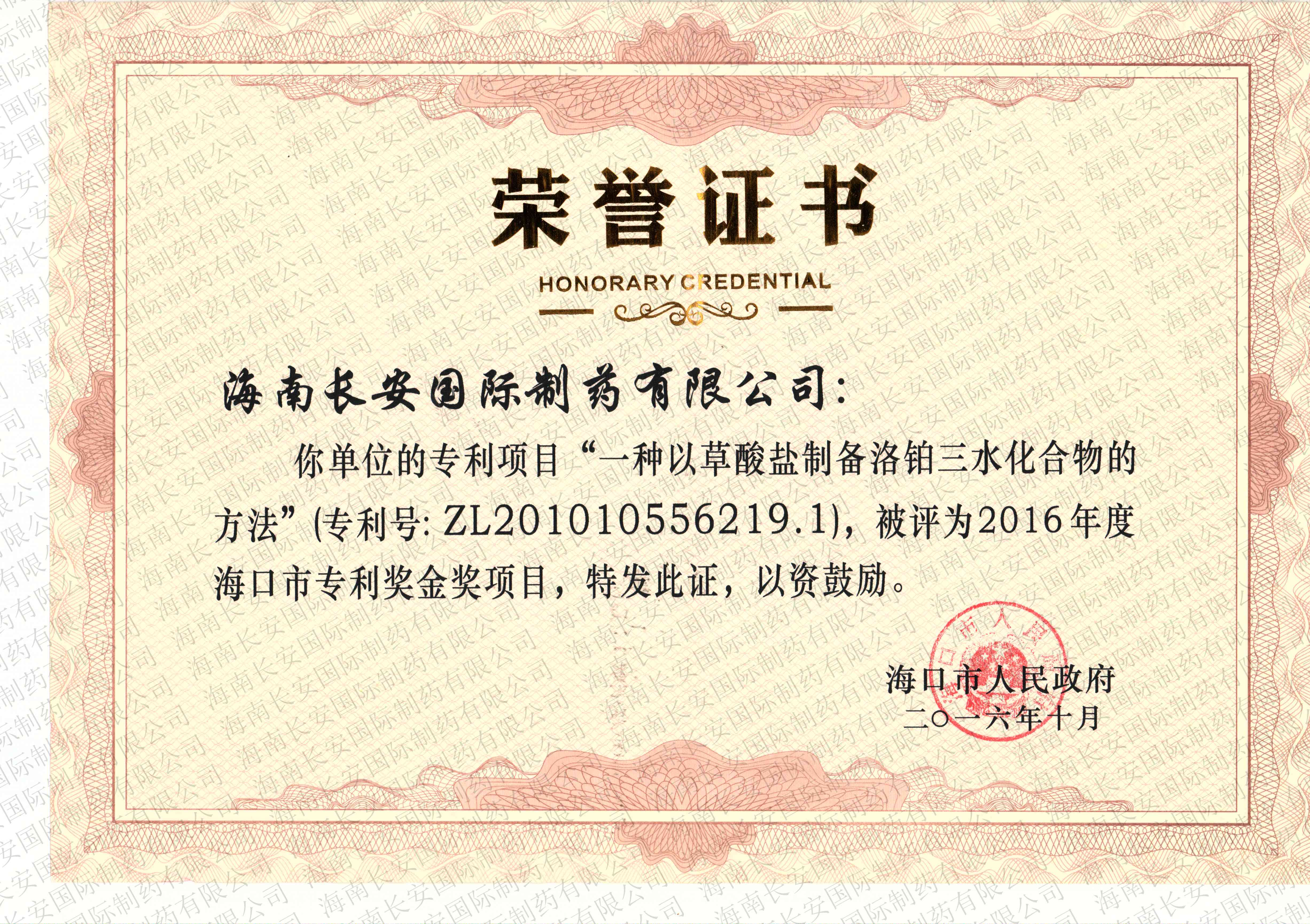 海南省2015年度中小企業成長性獎勵(生物醫藥行業)-一等獎