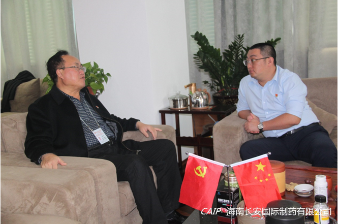 今日下午,??诟咝聟^(qū)管委會(huì)副主任韓青蒞臨海南長安國際制藥有限公司黨支部交流黨務(wù)工作。海南長安國際制藥有限公司黨支部書記汪立冬熱情接待。
