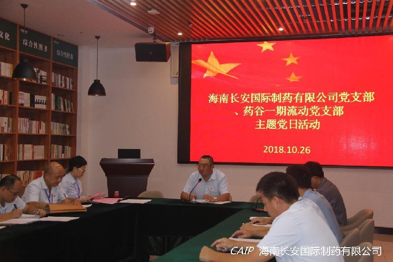 為提高黨員的愛(ài)國(guó)愛(ài)黨意識(shí),10月26日下午,在海南長(zhǎng)安國(guó)際制藥有限公司黨支部書(shū)記汪立冬的帶領(lǐng)下,海南長(zhǎng)安國(guó)際制藥有限公司黨支部和??趪?guó)家高新區(qū)藥谷一期(國(guó)科園)流動(dòng)黨支部的黨員、入黨積極分子到高新區(qū)黨建共享平臺(tái)開(kāi)展主題黨日活動(dòng)。