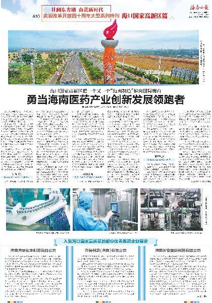 海南長安國際制藥有限公司榮登2018年12運(yùn)27日《海南日報(bào)》A10版慶祝改革開放四十周年大型系列特刊??趪腋咝聟^(qū)篇“勇當(dāng)海南醫(yī)藥產(chǎn)業(yè)創(chuàng)新發(fā)展領(lǐng)跑者”一欄。詳細(xì)報(bào)道如下: