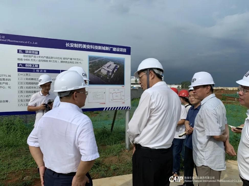 6月6日,海南省委常委、??谑形瘯浐沃矣岩恍蓄I(lǐng)導(dǎo)蒞臨長安制藥美安科技新城新廠建設(shè)項目考察調(diào)研。??谑形N?、副市長鞠磊,海口市委常委、秘書長林海寧,??谑懈笔虚L沈繼奔及高新區(qū)管委會主任劉立武等領(lǐng)導(dǎo)一同參加調(diào)研活動,海南長安制藥總經(jīng)理汪立冬陪同調(diào)研組并詳細(xì)介紹美安新廠項目進展情況。