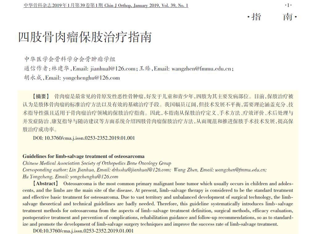 骨肉瘤是最常見的骨原發(fā)性惡性骨腫瘤,好發(fā)于兒童和青少年,四肢為其主要發(fā)病部位。目前,保肢治療被認(rèn)為是肢體骨肉瘤的標(biāo)準(zhǔn)治療方法以及有效的基礎(chǔ)治療手段。我國幅員遼闊,但醫(yī)療技術(shù)發(fā)展不平衡,需要理論涵蓋充分、技術(shù)指導(dǎo)性強(qiáng)且適用于骨肉瘤治療領(lǐng)域的保肢治療指南。因此,“四肢骨肉瘤保肢治療指南”從保肢治療定義、手術(shù)方法、療效評估、術(shù)后處理與并發(fā)癥防治、康復(fù)指導(dǎo)與隨訪建議等方面系統(tǒng)介紹四肢骨肉瘤保肢治療方法,為規(guī)范和推進(jìn)保肢手術(shù)技術(shù)發(fā)展、提高保肢治療成功率保駕護(hù)航。